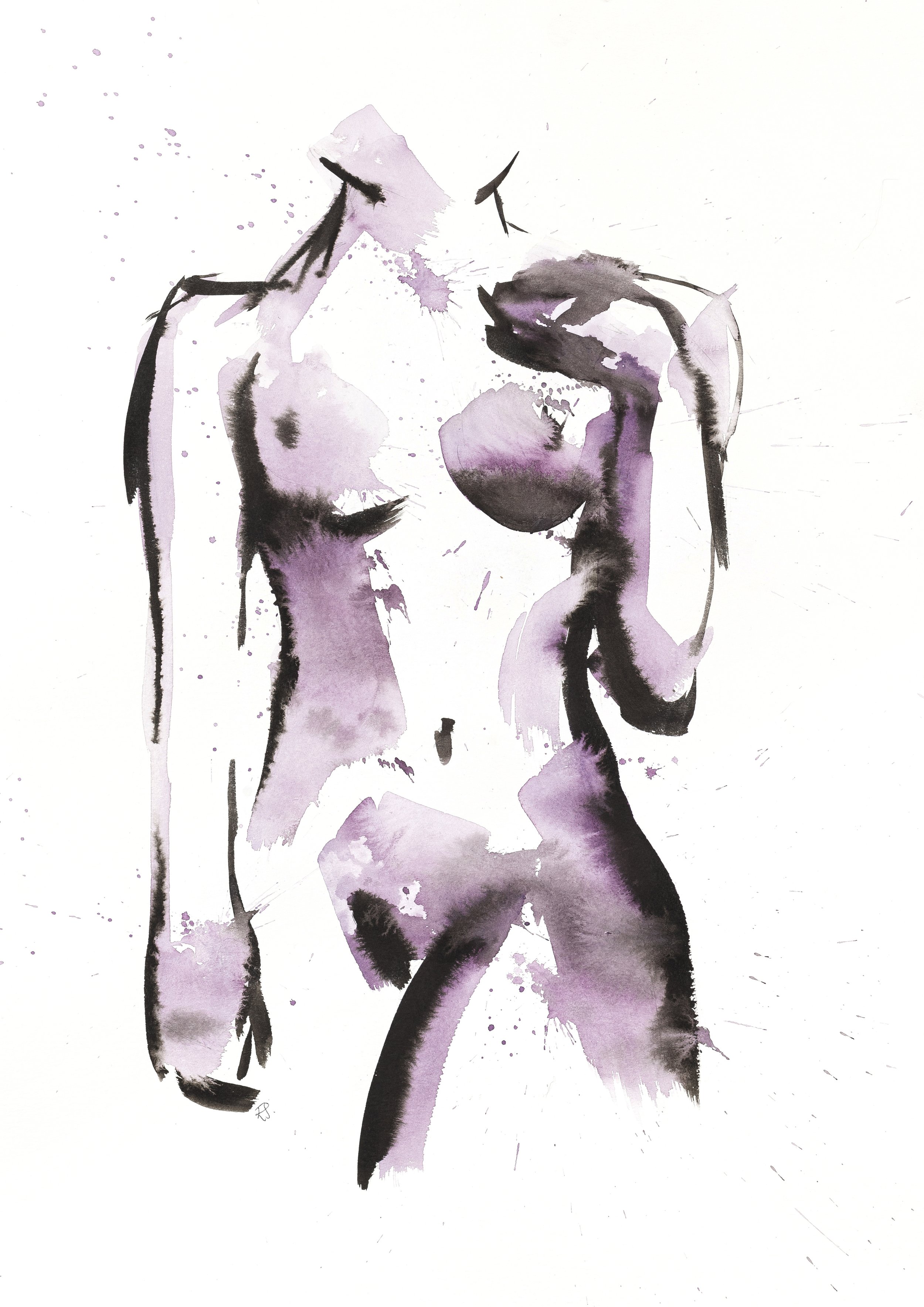 I did a series of nudes for an interior scheme, the original form I simplified from a life drawing and then let the ink on wet do all the work.